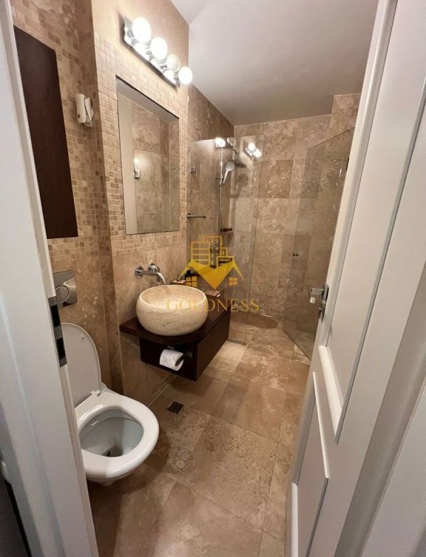 – baie cu dus walkin, calorifer port prosop și dulap pentru depozitare.
