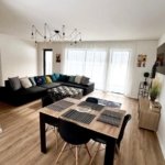 – living cu bucatarie open space complet utilată și mobilată, canapea extensibilă, loc de servit masa