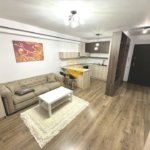 – living cu bucatarie open space complet utilată și mobilată, canapea extensibilă, loc de servit masa