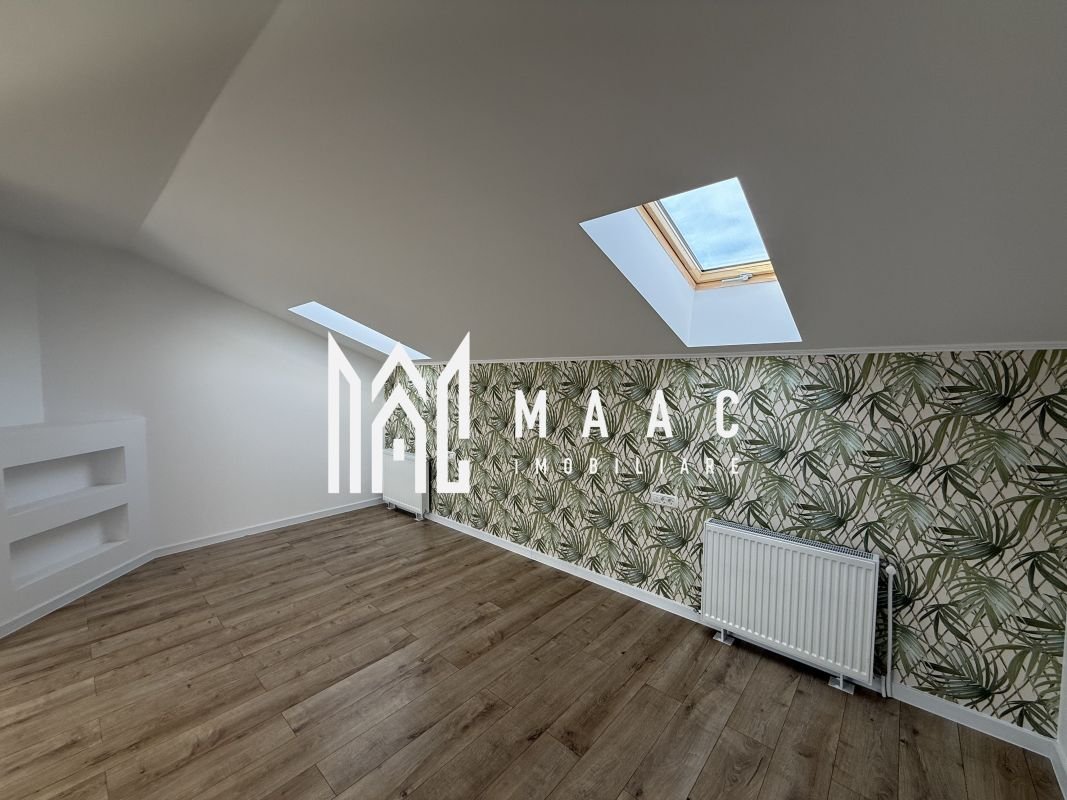 Etajul superior include un dormitor matrimonial și o baie, oferind un plus de intimitate și confort.