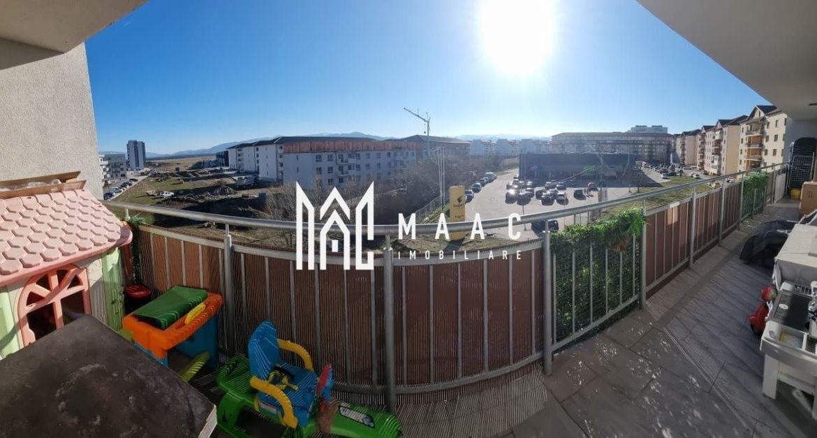 Apartamentul are o suprafață utilă de 93 mp, la care se adaugă o terasă generoasă de 23 mp și două balcoane de câte 3 mp fiecare, oferind o priveliște spectaculoasă către lanțul muntos. Compartimentarea este excelentă, cu un living de dimensiuni ample, iar fiecare cameră beneficiază de acces direct la terasă sau balcon.