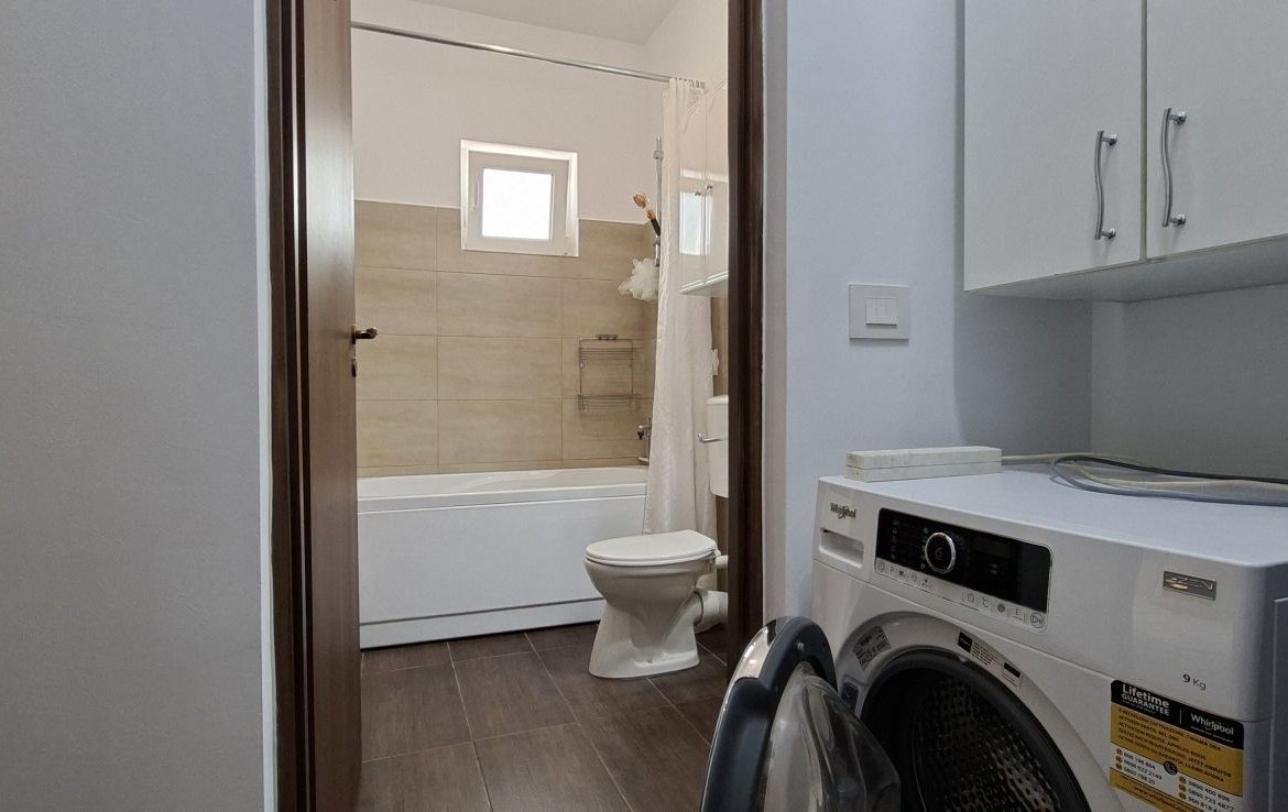 Apartamentul este mobilat si utilat, curtea este amenajata cu gazon, zona de foisor cu mobilier de exterior, un foraj si chiuveta exterioara.