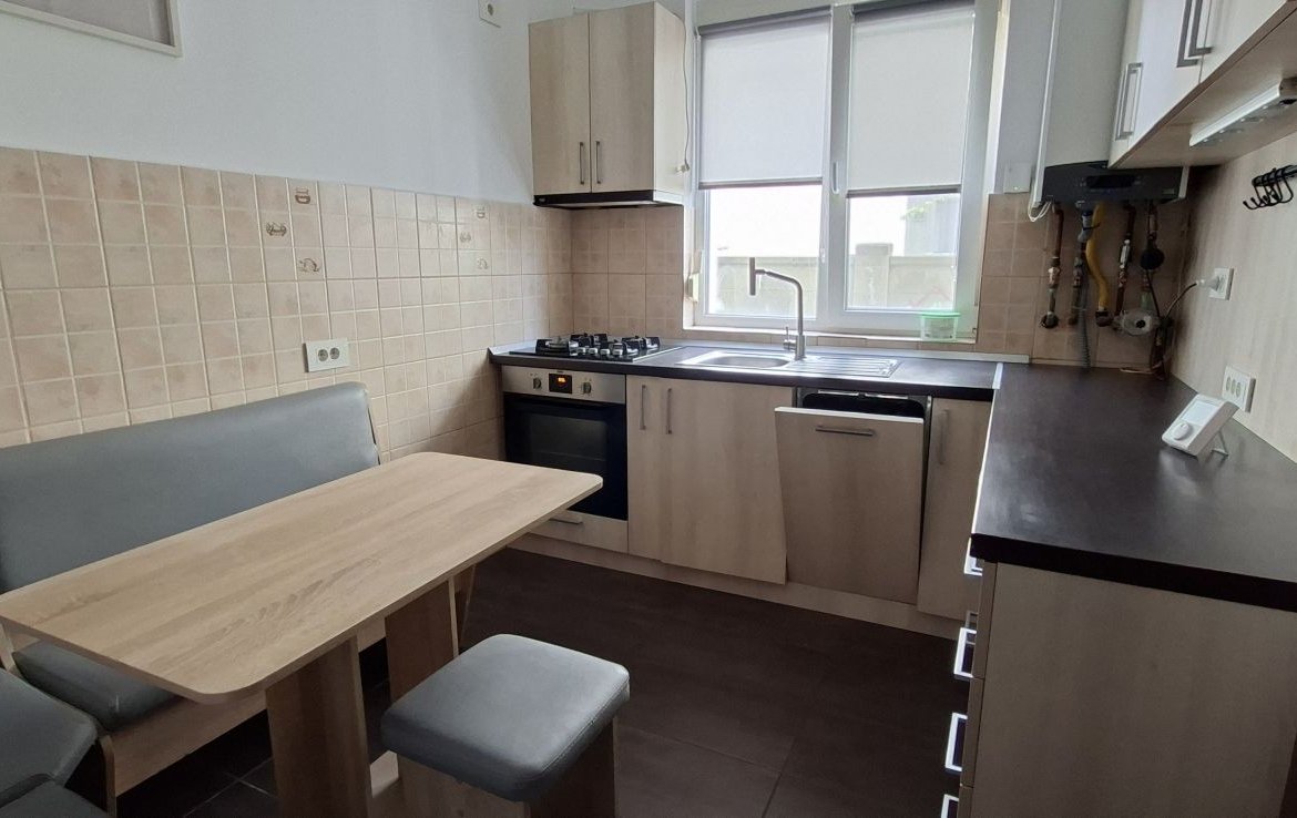 Apartament cu 2 camere, decomandat, curte de 60mp, boxa si 2 locuri de parcare, situat la intrarea in Dumbravita, in apropierea magazinelor Mega Image/Decathlon/Profi si statiei de expres.