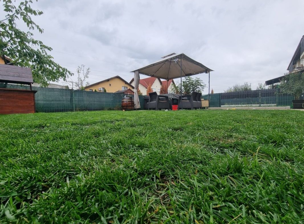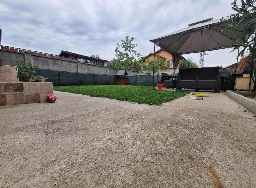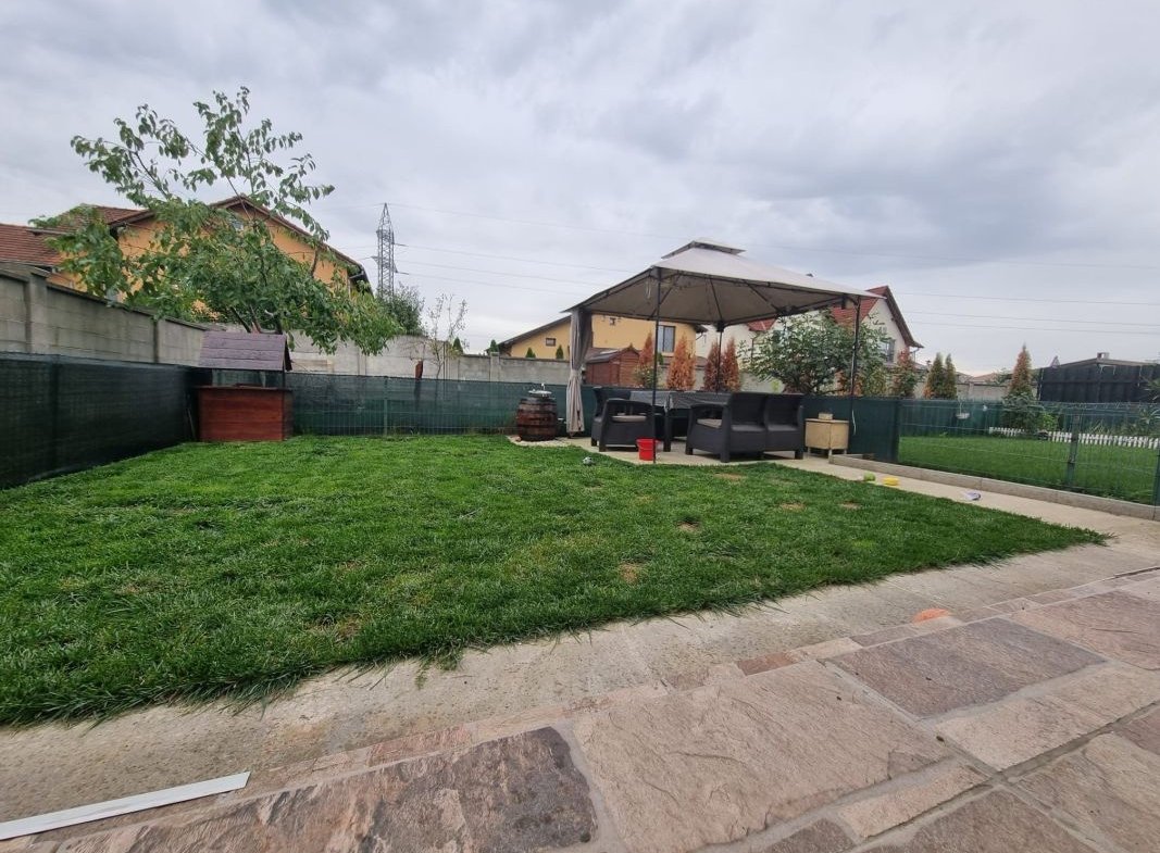 Apartamentul este mobilat si utilat, curtea este amenajata cu gazon, zona de foisor cu mobilier de exterior, un foraj si chiuveta exterioara.