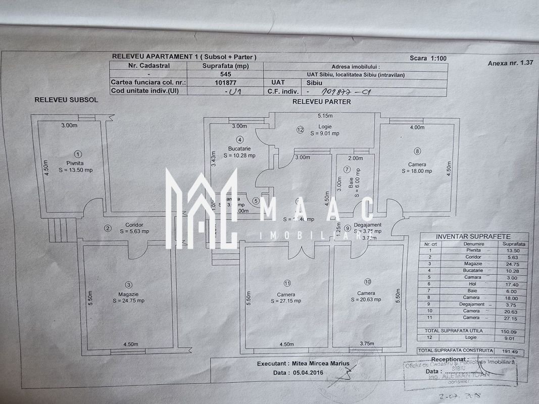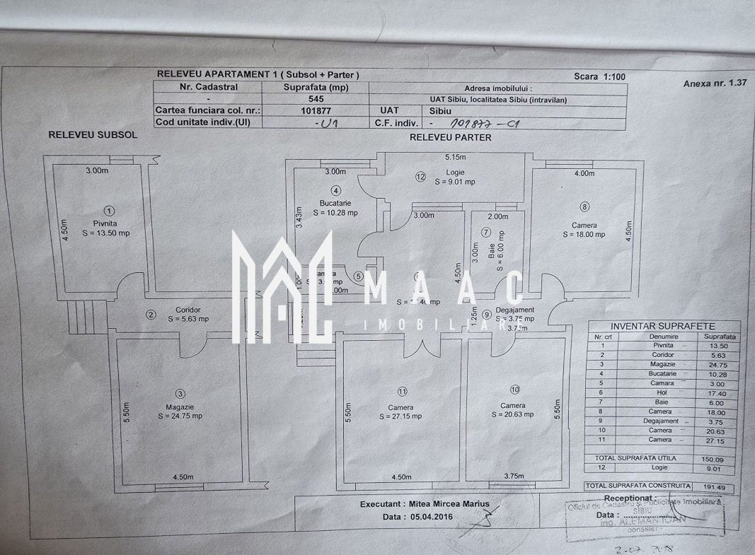 MAAC Imobiliare vă propune spre vânzare un duplex pe un singur nivel, spațios și luminos, situat pe strada Reconstrucției nr. 5, la câteva minute de mers pe jos de centrul Sibiului. Proprietatea este dispusă pe un singur nivel, are intrări separate și o suprafață utilă totală de 159 mp, fiind complet decomandată, ideală atât pentru locuință, cât și pentru investiție sau alte tipuri de utilizare.