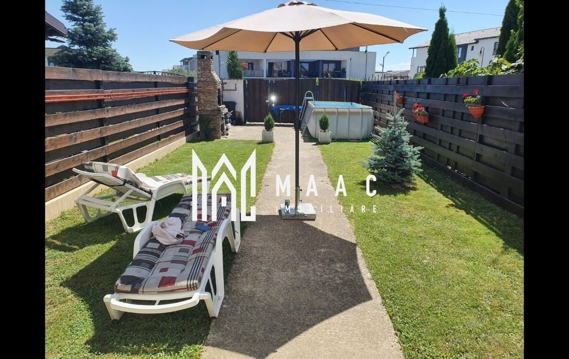Curtea din spate: terasă de 42 mp, zonă de relaxare, barbecue etc.