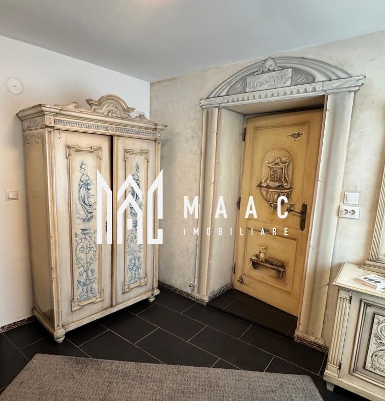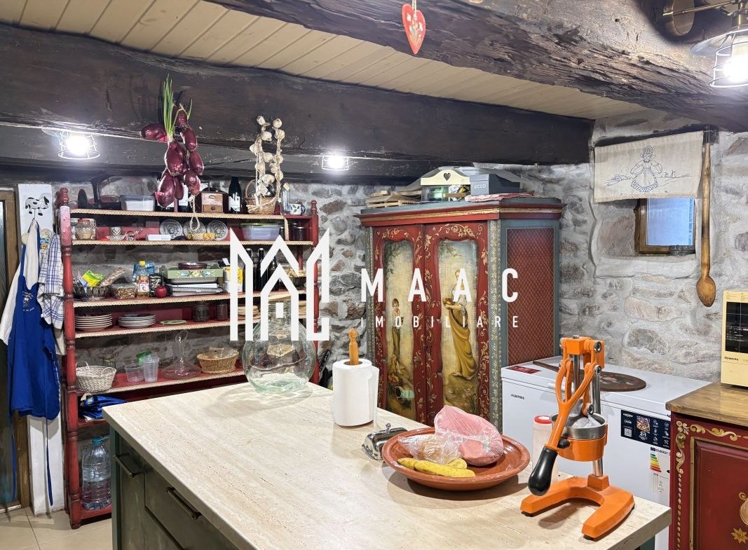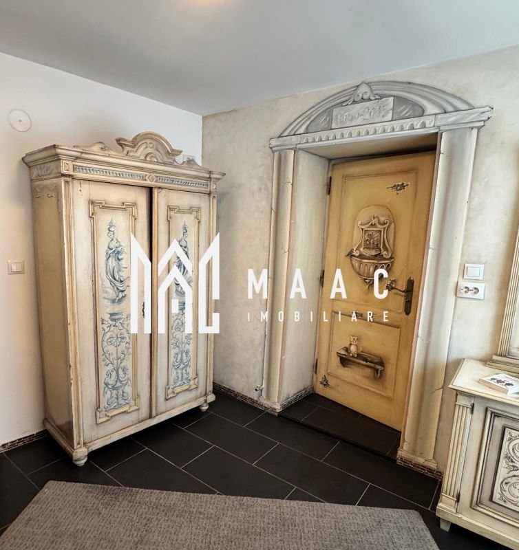 Spațiile sunt ample și luminoase, iar ambientul este îmbogățit de mobilier pictat, unic, realizat special pentru această casă, conferind proprietății un caracter distinct.