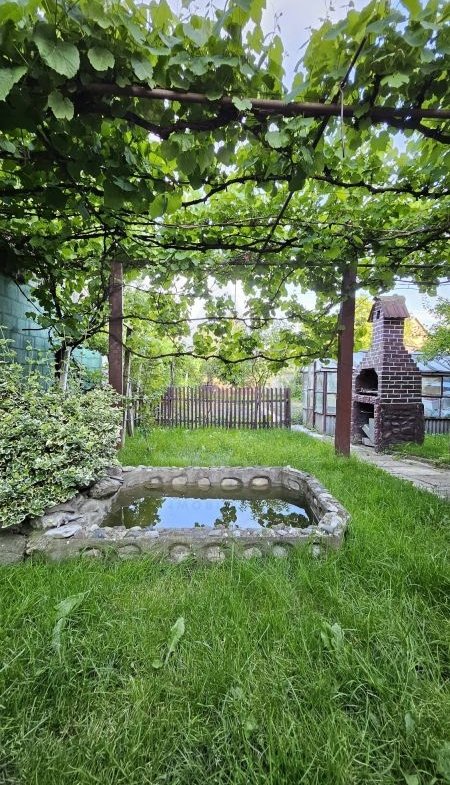 Curtea este amenajata cu pomi si plante ornamentale, loc pentru barbeque si sera pentru cultivare.