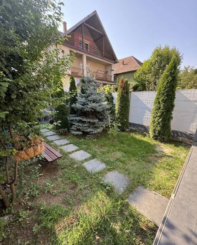 Casa te întâmpină cu o curte superb amenajată, un adevărat colț de relaxare: gazon verde atent întreținut, flori colorate care oferă prospețime întregului spațiu și o băncuță cochetă, ideală pentru momentele de liniște petrecute în aer liber.