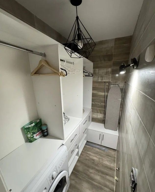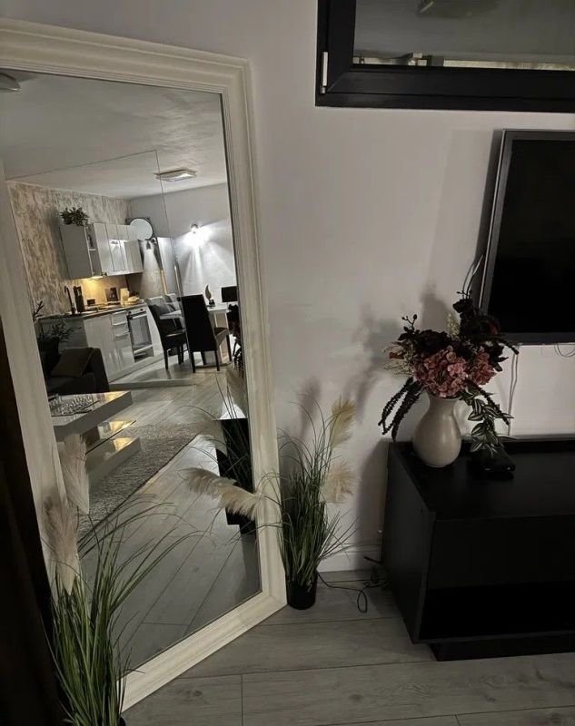 Interiorul impresionează printr-un design modern și funcțional, fiind amenajat cu atenție la fiecare detaliu. Bucătăria este delimitata cu un perete de sticla, cfiind omplet mobilată și utilată cu electrocasnice noi și moderne, oferind un spațiu ideal pentru gătit și organizare eficientă. Baia este elegant finisată, iar locuința beneficiază de un dressing separat, perfect pentru depozitare optimă.