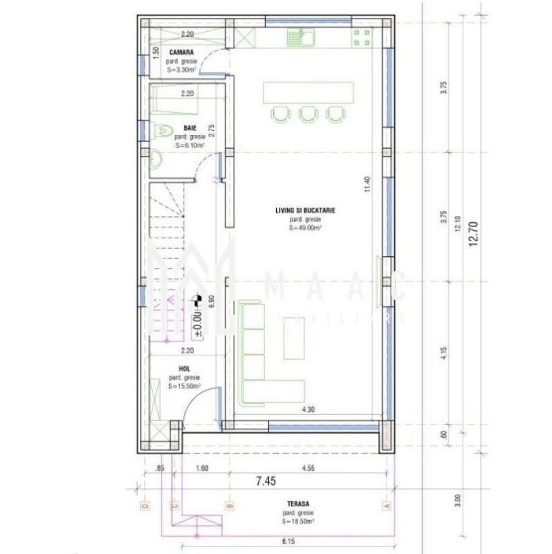 Living + bucătărie open space (49 mp)