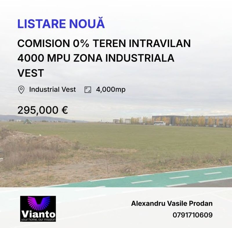 COMISION 0% TEREN INTRAVILAN 4000 MPU ZONA INDUSTRIALA VEST