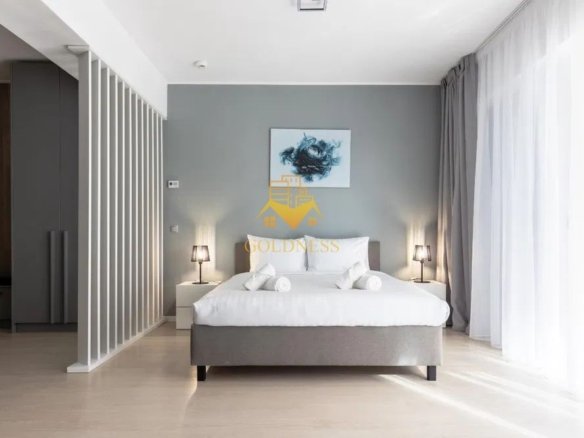 Apartamentul este complet mobilat și utilat, beneficiind de dotări moderne: centrală proprie, aer condiționat, TV LED nou (139 cm), frigider nou, plită și hotă noi, mobilier nou și mașină de spălat nouă.