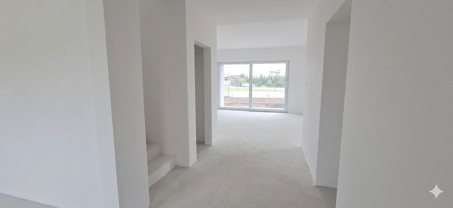 Dotari: incalzire in pardoseala cu termostate montate in fieare incapere, centrala termica proprie pe gaz, curent trifazic, aer condituonat, ferestre tripan Trocal 76 mm, 48 mm, montaj cu bandă profesională , curtea amenajata cu gazon, plante, sistem de irigatii, foraj, sistem de supraveghere, poarta automatizata, videointerfon, living cu vitraj mare de 3,5ml lungime si inchidere cu usi culisante etc.