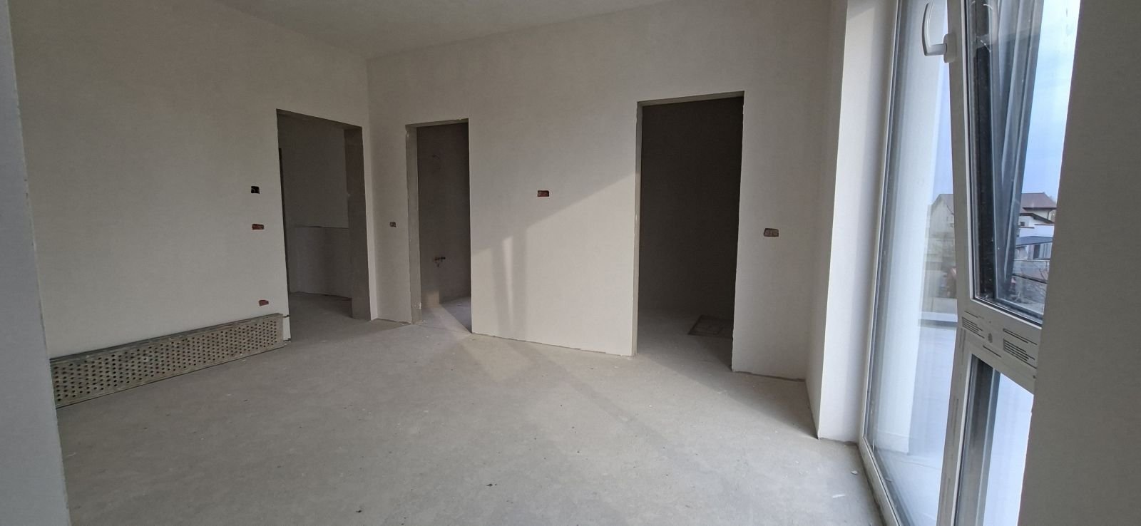 – zona de living, bucatarie si loc de luat masa cu iesire pe terasa