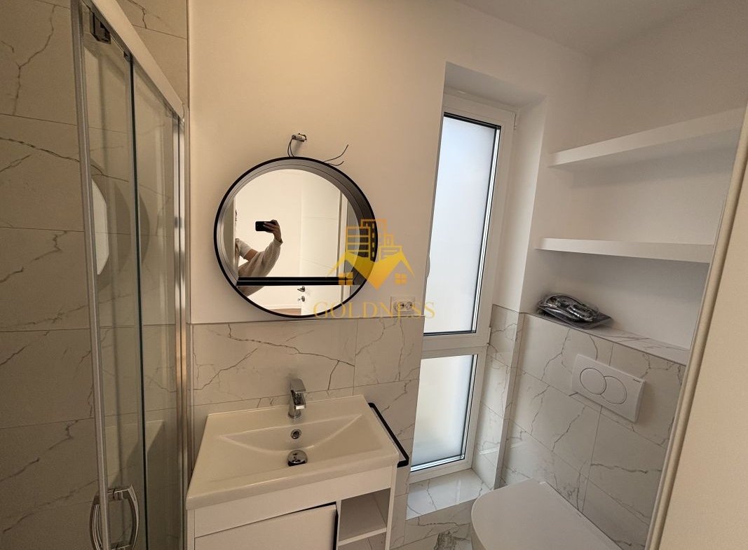 – baie cu cabina de dus, calorifer port prosop și dulap pentru depozitare.