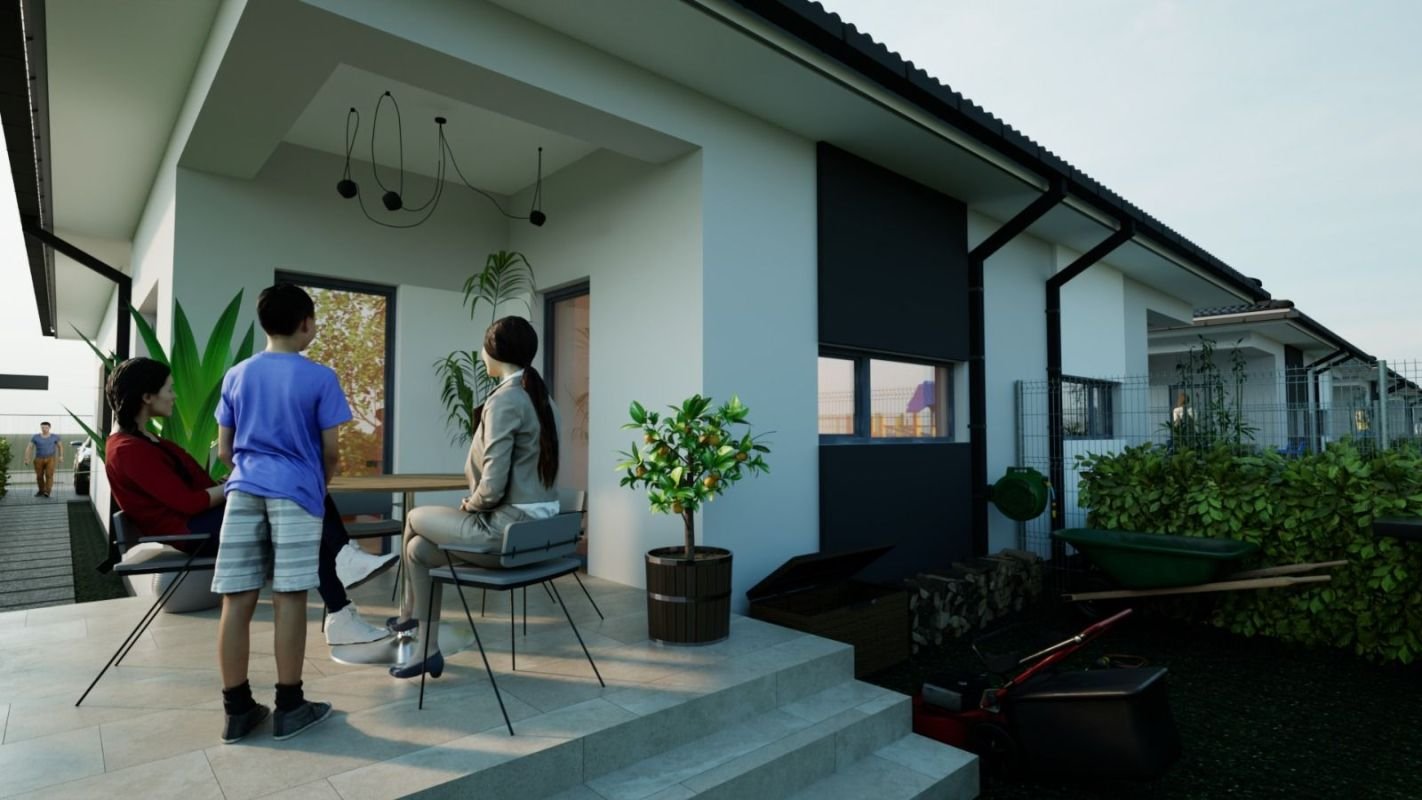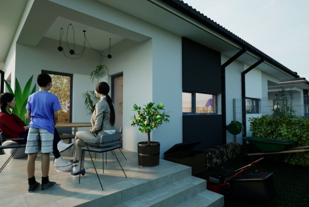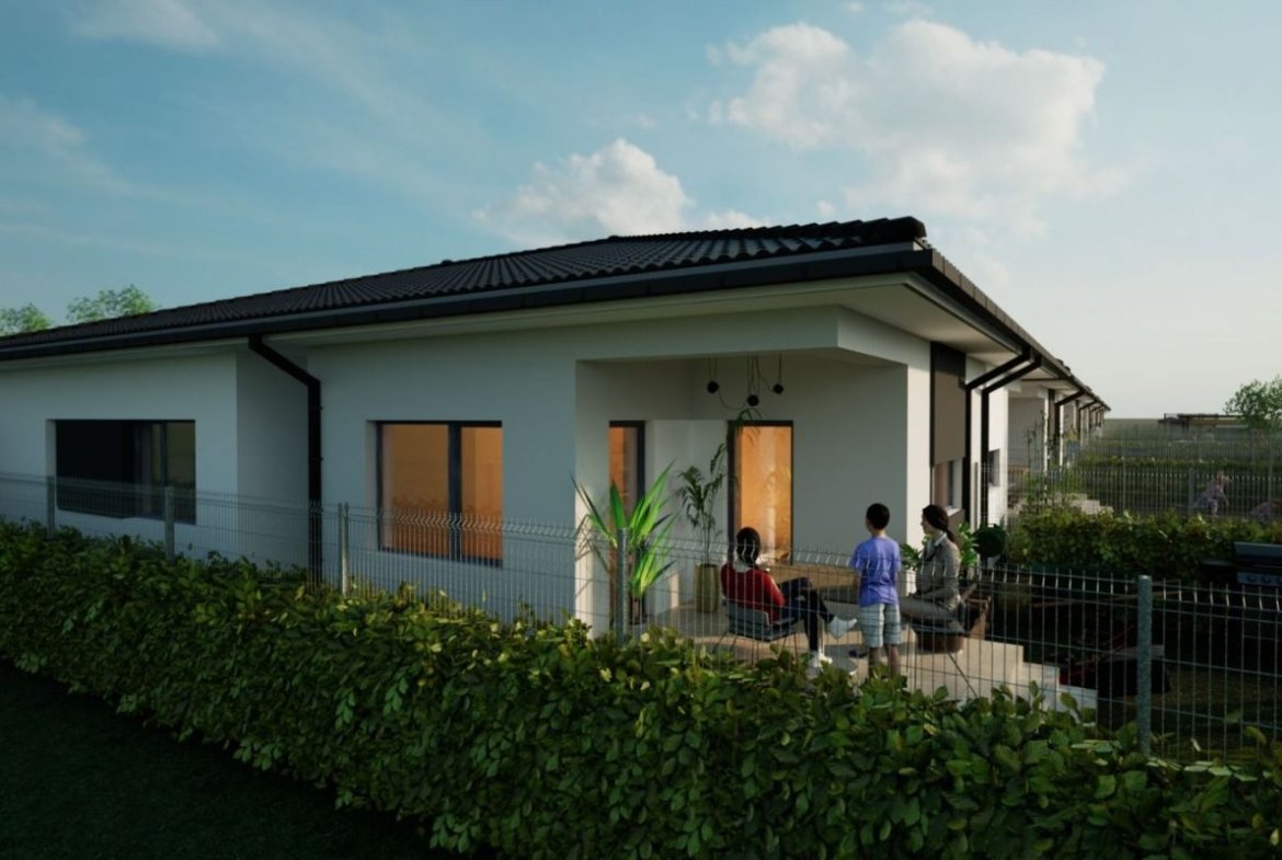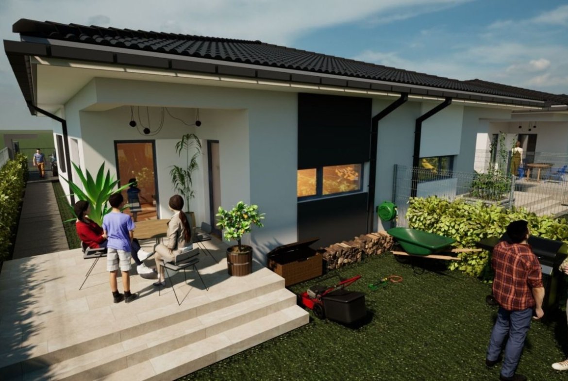 Duplex pe plan parter in suprafata utila de 77 mp si teren de 297 situat in Bucovat avand urmatoarea compartimentare interioara:
