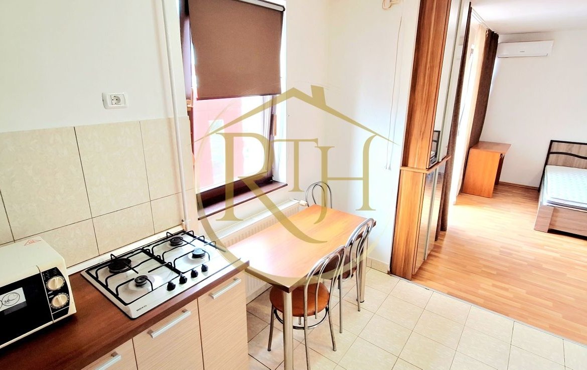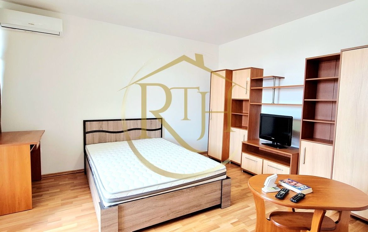 Apartamentul este bine compartimentat și luminos, fiind compus din hol de intrare, cameră cu ieșire pe balcon, bucătărie open space, dressing, baie cu cadă și spațiu de depozitare. Se închiriază complet mobilat și utilat, fiind dotat cu mașină de spălat rufe, aragaz, cuptor cu microunde, frigider, aer condiționat, televizor, pat matrimonial și mobilier complet.