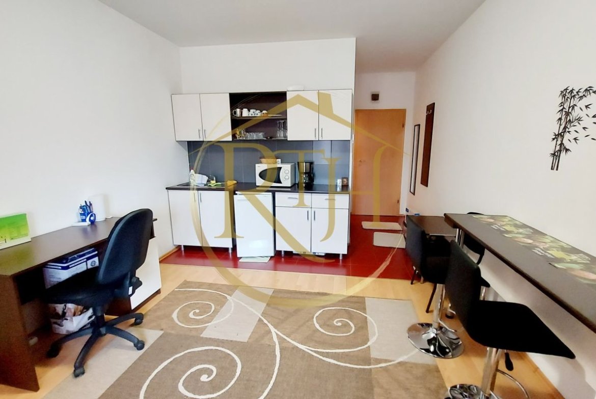 Garsoniera dispune de canapea extensibila, masina de spalat haine, plita electrica pentru gatit, clima, birou, dulap de haine si televizor .