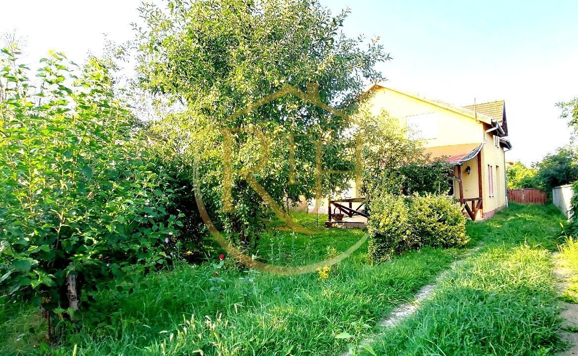 Terenul aferent are o suprafață de 809 mp și include o curte frumos si livada cu pomi fructiferi, mult spațiu verde și un loc de grătar. Casa este dotată cu geamuri termopan, gresie, faianță, parchet și climatizare. Sistemul de încălzire poate fi asigurat atât de centrala termică pe gaz, cât și de centrala pe lemne.