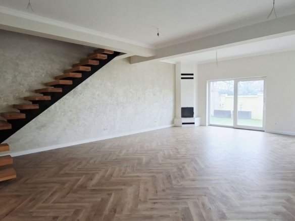 Fiecare locuință dispune de o suprafață utilă de 100 mp, iar suprafața total construită este de 155 mp. La parter regăsim un hol de intrare, un dormitor, living spațios cu acces către terasa acoperită de 16 mp, o bucătărie separată, baie și camera tehnică. La etaj sunt două dormitoare, dintre care unul beneficiază de dressing propriu, o baie și hol de distribuție.