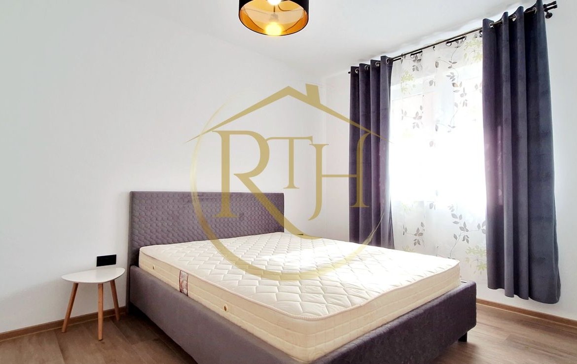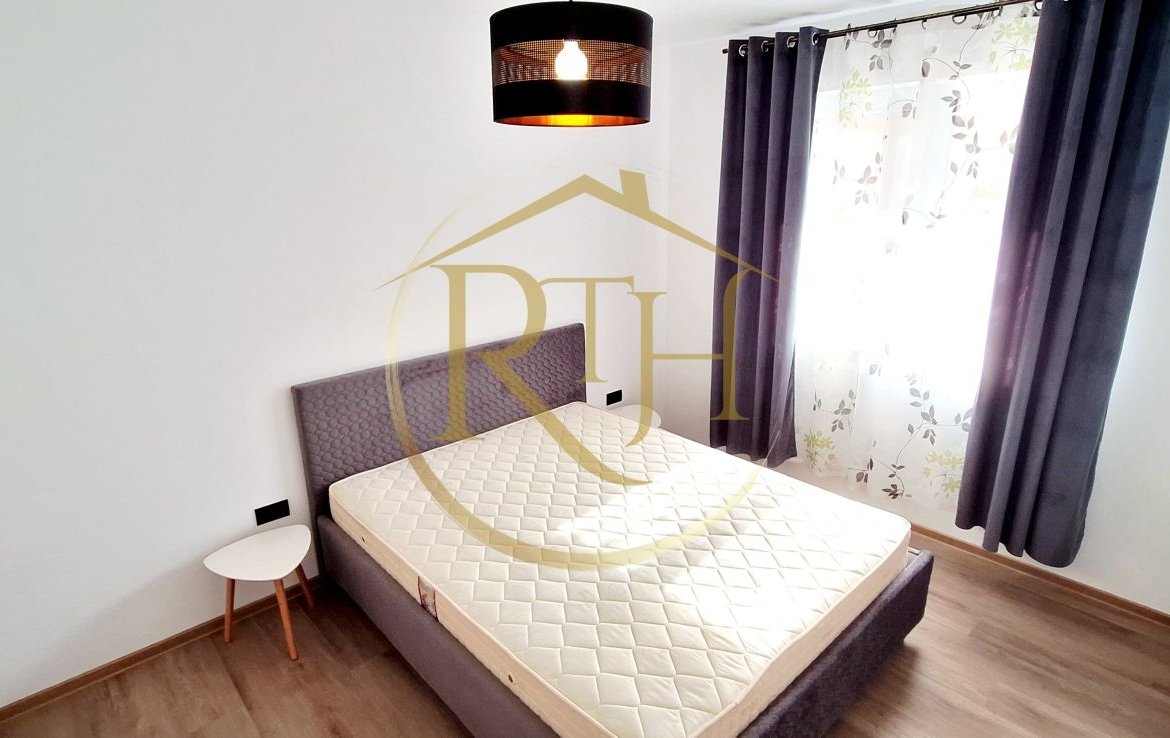 Locuința se află la parterul unui bloc nou și este la prima închiriere, beneficiind de finisaje și dotări complet noi. Apartamentul este semidecomandat și compartimentat eficient pentru a oferi confort și funcționalitate: un dormitor spațios dotat cu pat matrimonial și un dulap generos pe tot peretele, tip dressing; un living luminos, cu ieșire directă pe terasă – loc ideal pentru relaxare; bucătărie separată, complet mobilată și utilată; baie modernă, prevăzută cu cadă și geam pentru aerisire naturală.