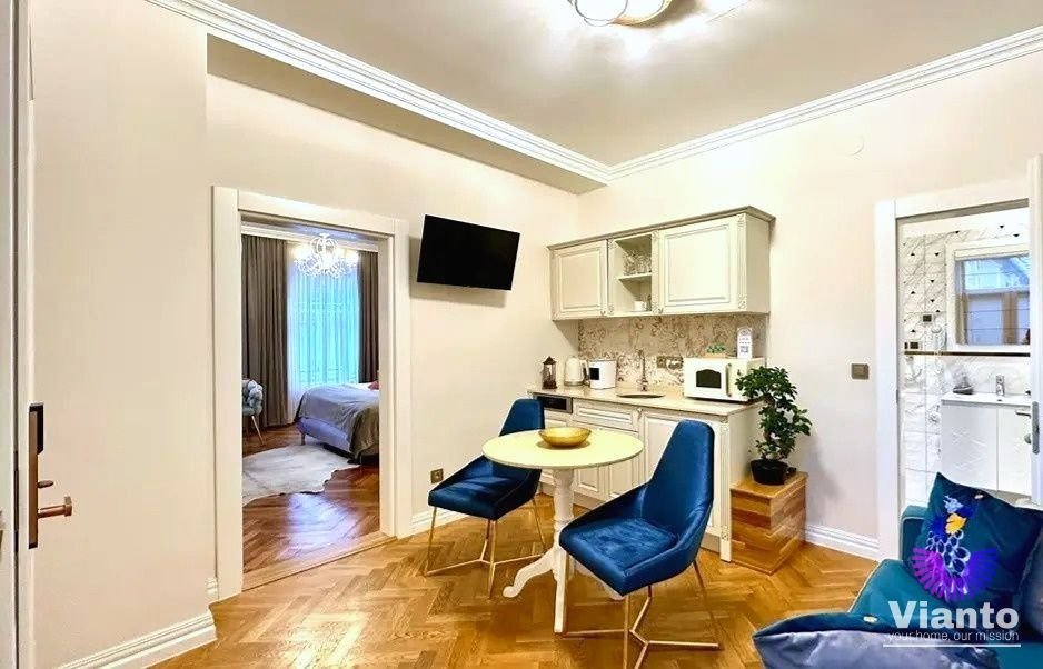Amenajarea interioara imbina elemente moderne cu accente elegante, creand un spatiu primitor si confortabil, ideal pentru o persoana sau un cuplu care isi doreste sa locuiasca in centrul orasului.