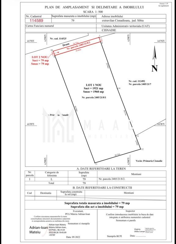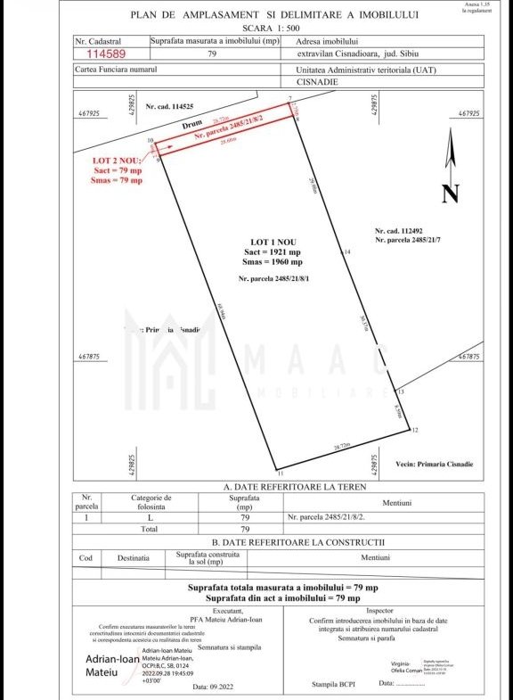 MAAC IMOBILIRE VA PROPUNE SPREVANZARE UN TEREN INTRAVILAN O PARCELA DE 1960 MP IN LOCALITATEA CISNADIOARA – JUDETUL SIBIU