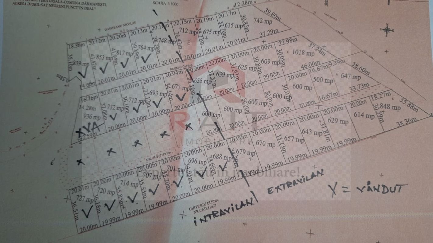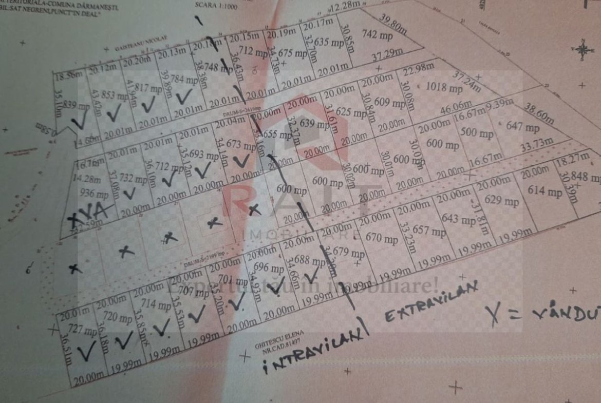 Se vinde 39 parcele teren intravilan intre 600 si 800 mp x 17 euro mp.