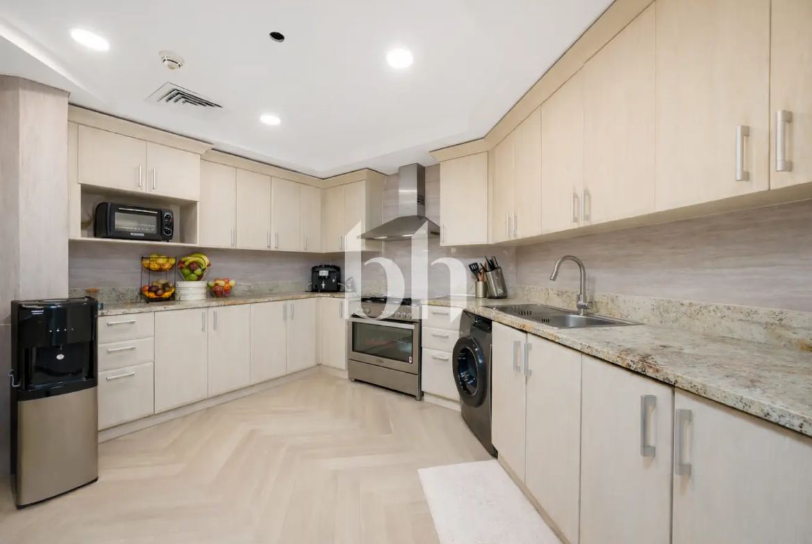 Discover refined beachfront living in this fully upgraded 3-bedroom apartment with maid’s room, located in Al Dabas Tower, Shoreline Apartments – Palm Jumeirah, Dubai.